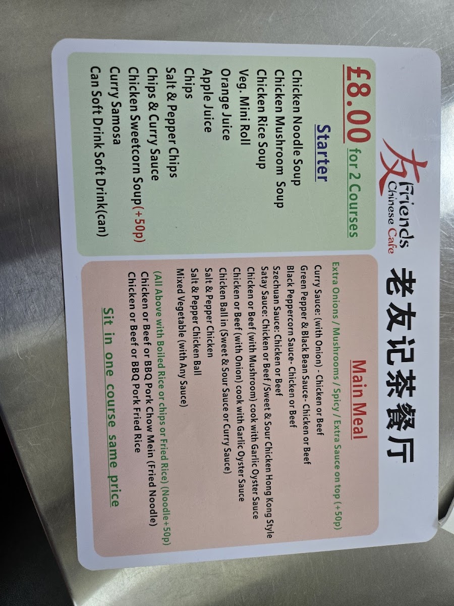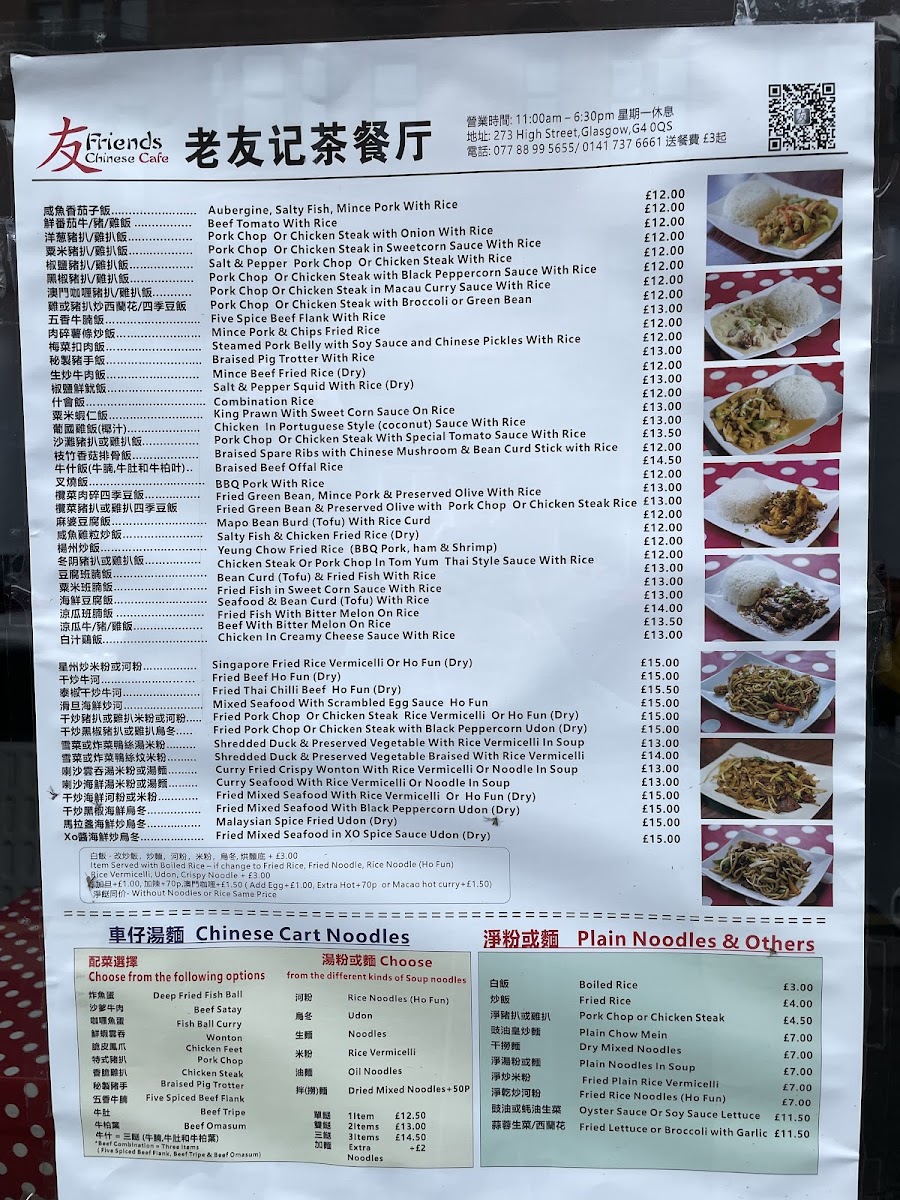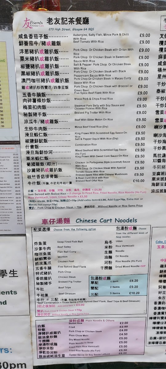 The menu at Friends Chinese Cafe offers a straightforward and comforting selection typical of a Hong Kong-style casual eatery. You'll find a mix of familiar café favorites and traditional Chinese home-style dishes, suited well for a quick lunch, a simple dinner, or a relaxed spot to enjoy approachable flavors.