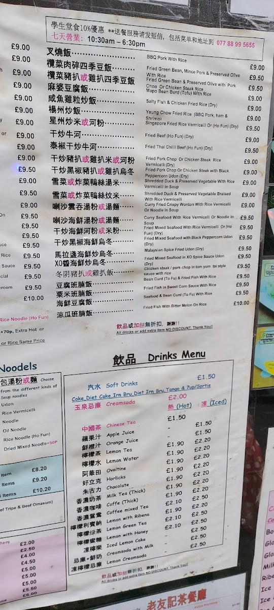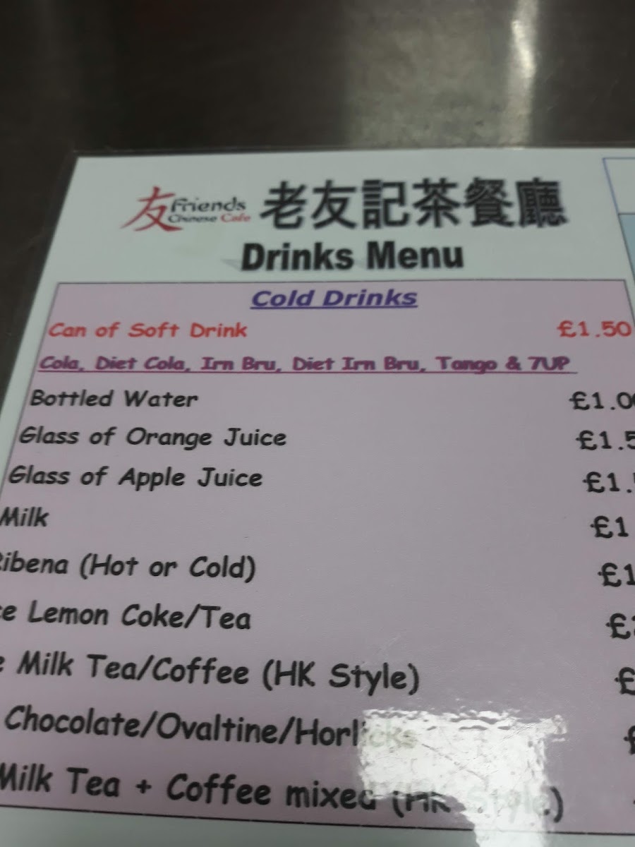 The drinks menu complements the food well, featuring a variety of soft drinks, traditional Hong Kong-style milk teas, and warming options like green tea or lemon tea, perfect for refreshing or soothing moments during your meal. The simple, no-frills beverage choices reflect the welcoming, unpretentious atmosphere of the cafe.